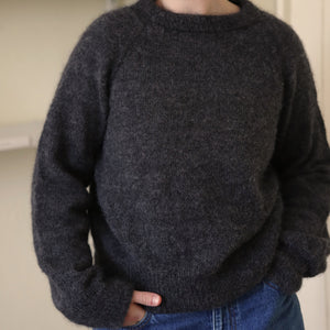 Ein enkel og anvendeleg og luksuriøs kvardagsgenser i Eir. Genseren blir strikka ovanfrå og ned med raglanaukingar til armar.
